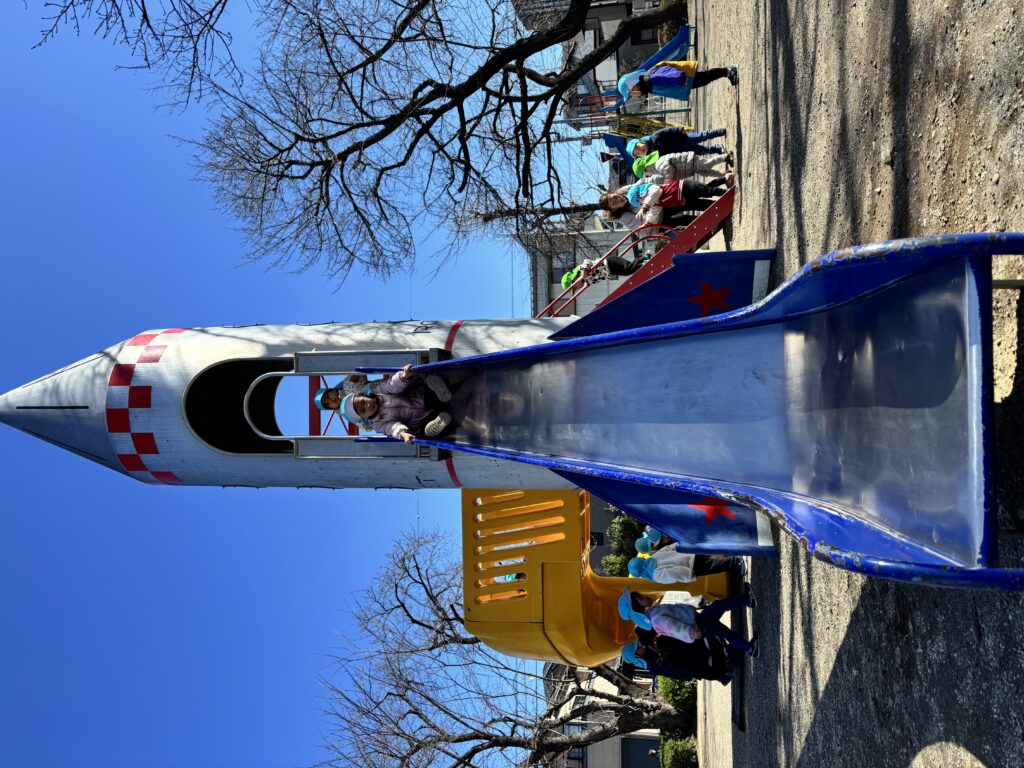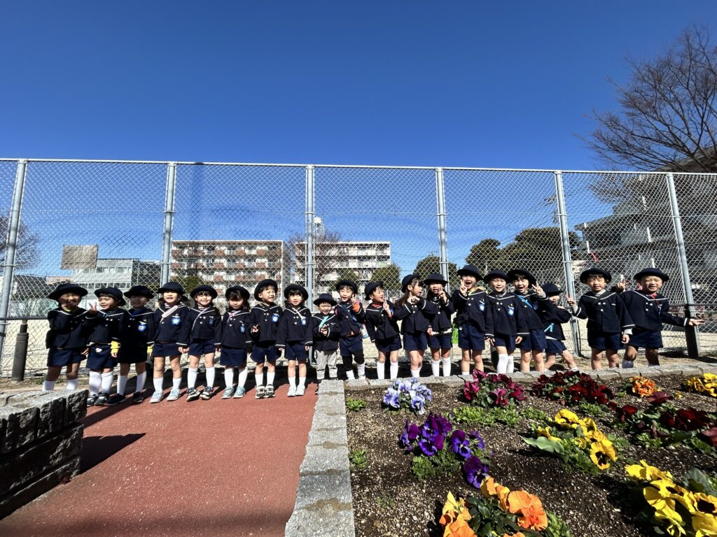 桜がちらほらと咲きはじめ春風が吹く中で、お別れ遠足に行ってきました。
